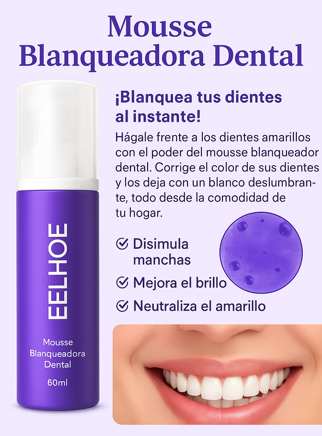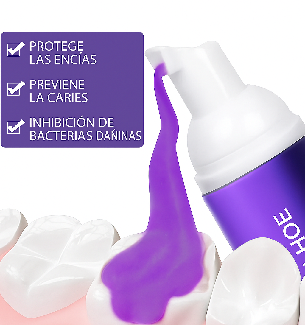 Aplica una pequeña cantidad de mousse sobre tu cepillo dental y cepilla suavemente durante 2 a 3 minutos, igual que con una pasta normal. Luego enjuaga con abundante agua. Se recomienda usarlo dos veces al día para mejores resultados.