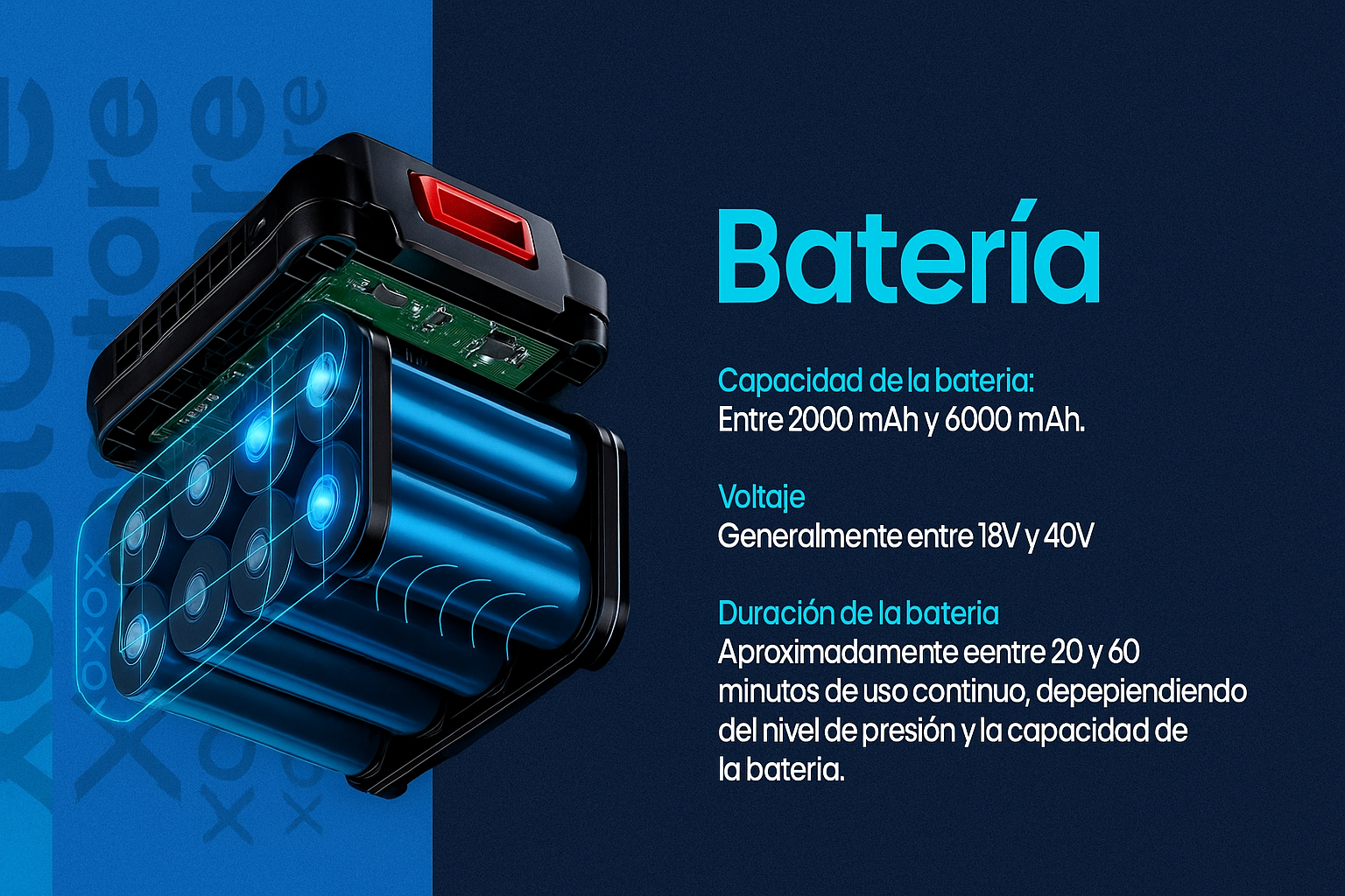 La duración aproximada es entre 20 y 60 minutos de uso continuo, dependiendo del nivel de presión seleccionado y la capacidad de la batería (2000–6000 mAh).