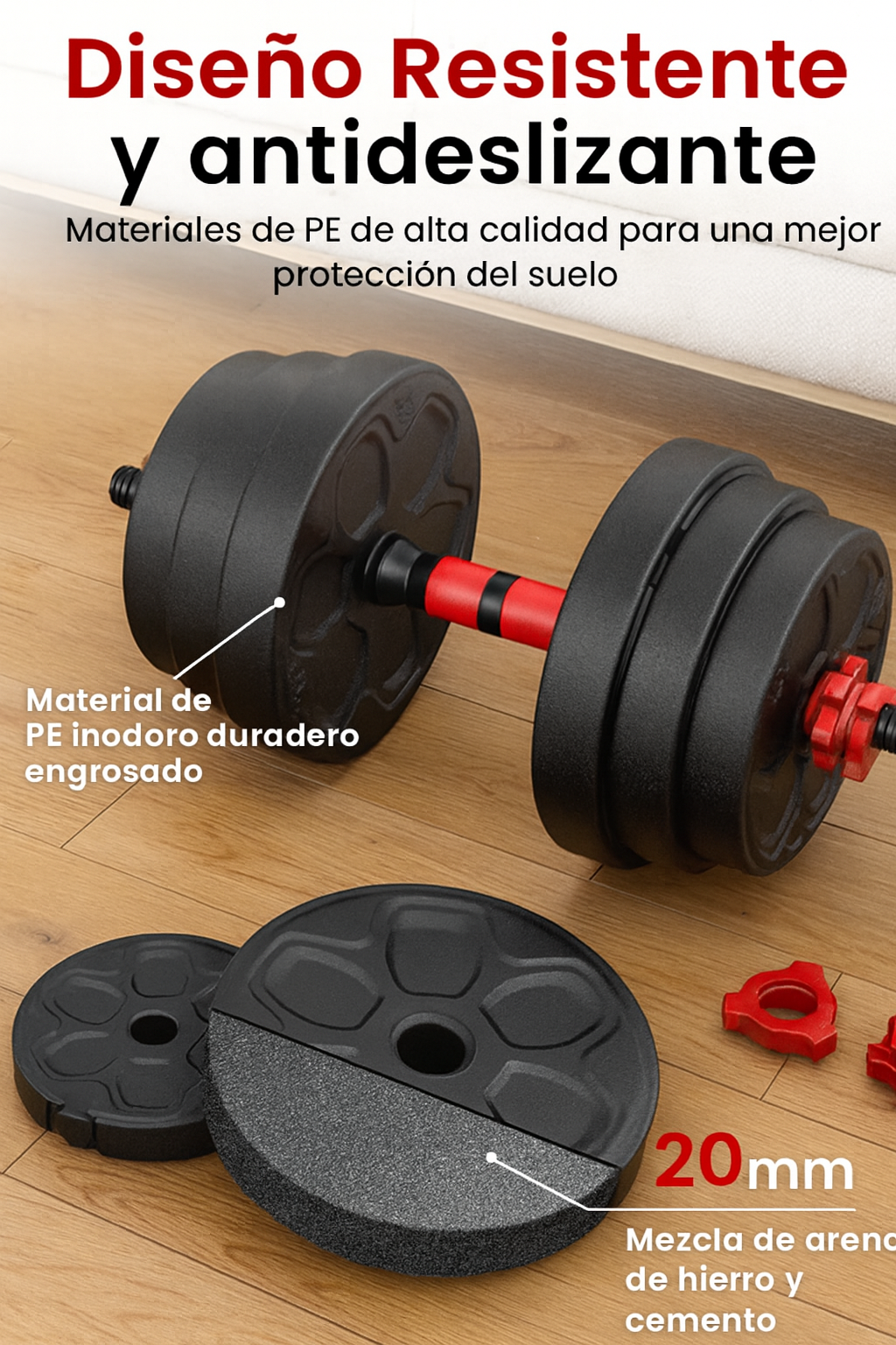 Kit de mancuernas plegables de 20KG - Barras, discos, comodidad y practicidad