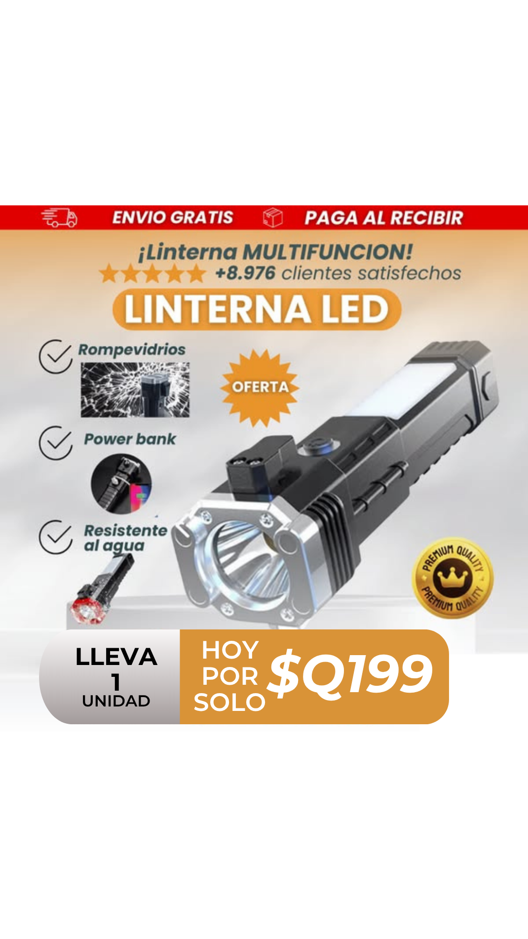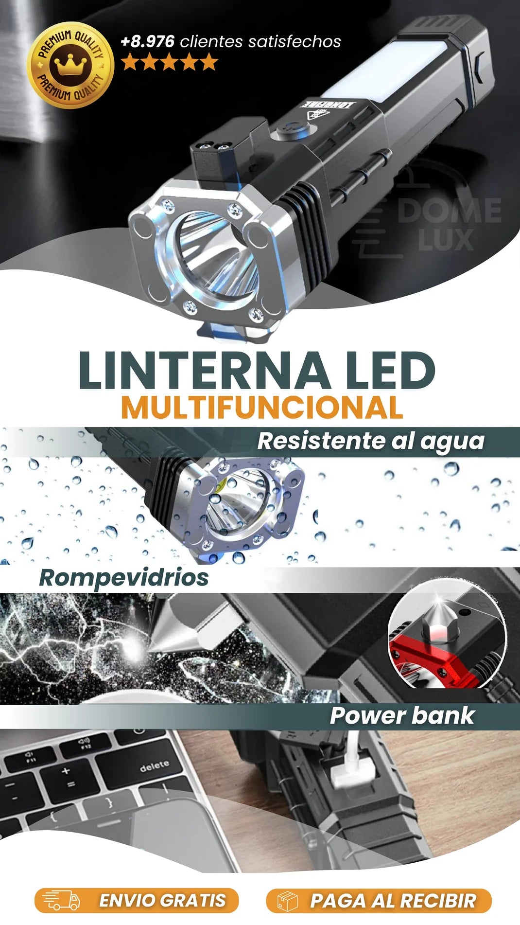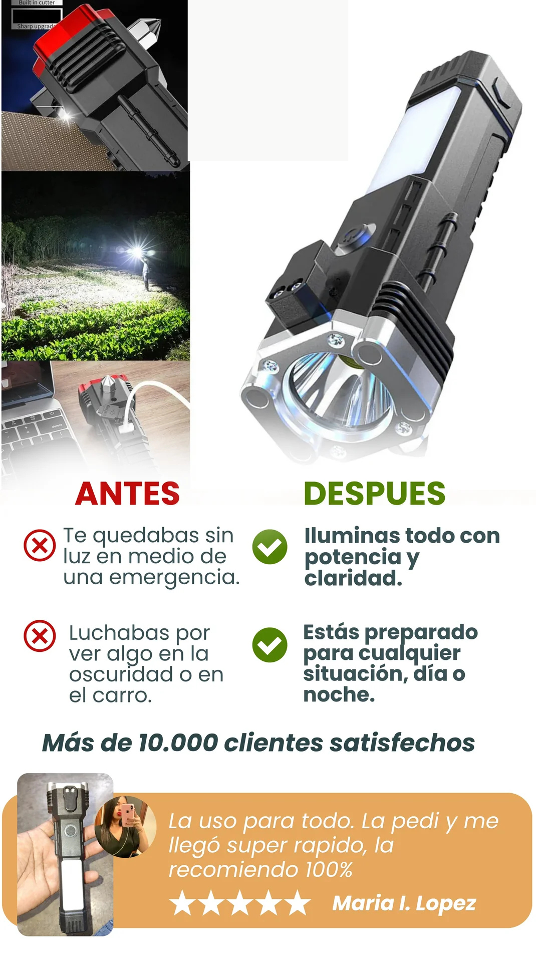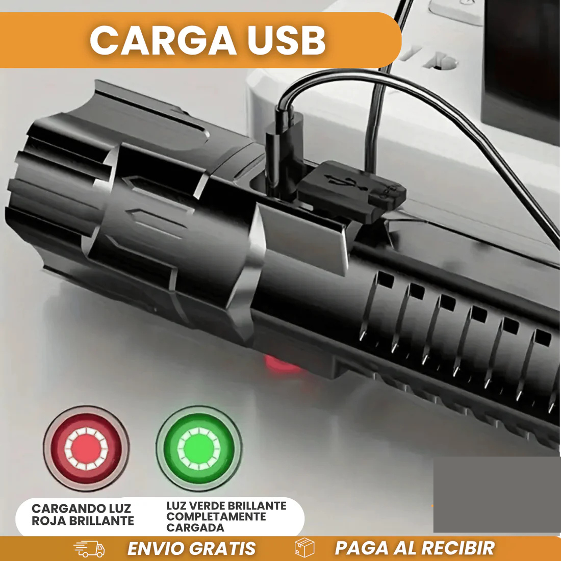 Dependiendo del modelo, puede alcanzar entre 800 y 10,000 lúmenes, iluminando hasta 200-500 metros de distancia. Es ideal para uso exterior, emergencias, camping o seguridad.