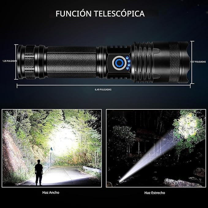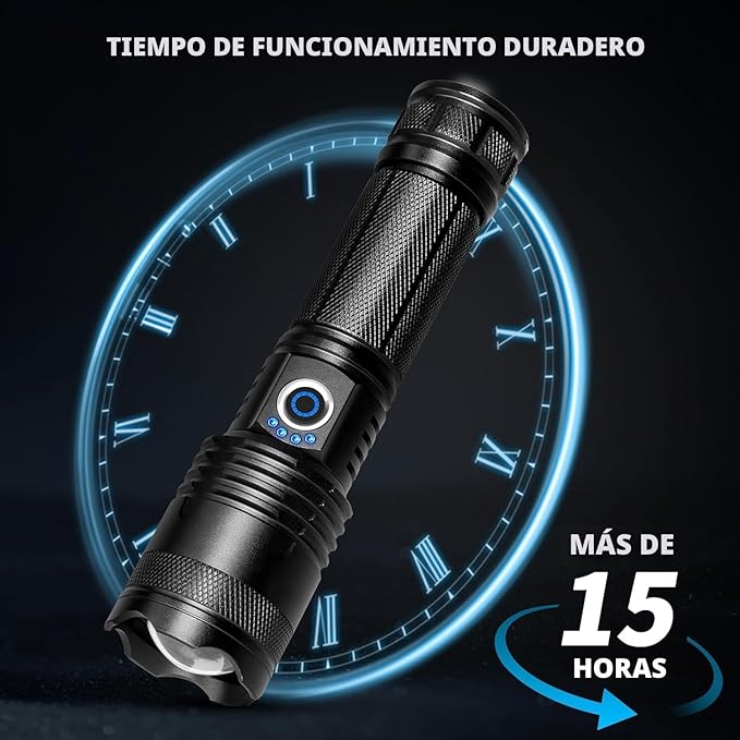 Dependiendo del modelo, puede durar entre 2 y 5 horas de luz continua o mantenerse en modo defensa durante días si no se activa. Se recarga mediante cable USB o cargador incluido.
