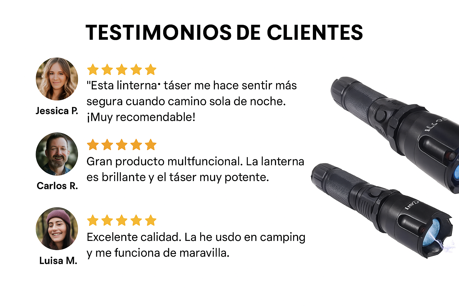 La legalidad depende del país o ciudad. En algunos lugares está permitida para defensa personal, mientras que en otros requiere permiso o está restringida. Recomendamos verificar la normativa local antes de comprar o portar el dispositivo.