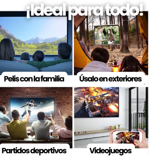 Funciona mejor en lugares oscuros o con poca luz. En ambientes muy iluminados, la imagen puede verse opaca (como cualquier proyector de esta categoría).